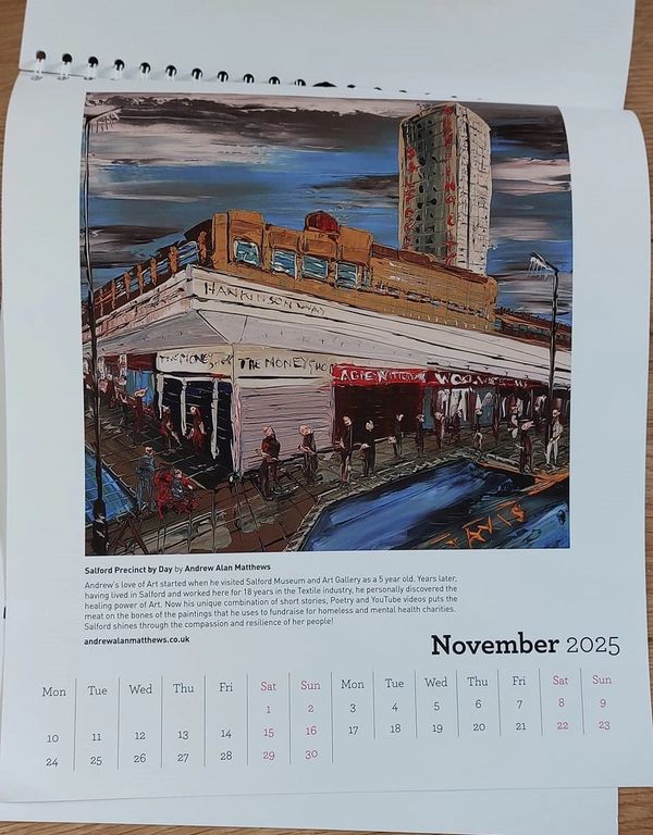 Together, the painting and poem form a poignant social commentary: Manchester’s festive lights illuminate not just joy, but also the quiet struggles of those left in the shadows. Matthews succeeds in blending local character, compassion, and artistry — reminding us that even in the coldest hours, empathy is what warms the soul.